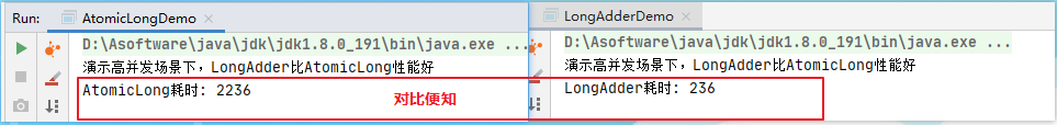 * AtomicLongDemo: 演示高并发场景下,LongAdder比AtomicLong性能好