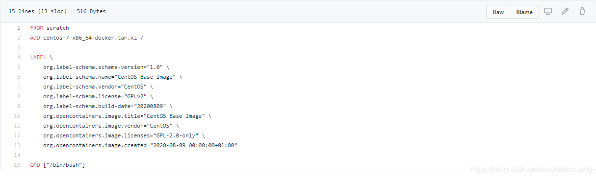 比如在搜索https://hub.docker.com/_/centos 选择其中一个版本的centos去GitHub看一下镜像,示例如下图