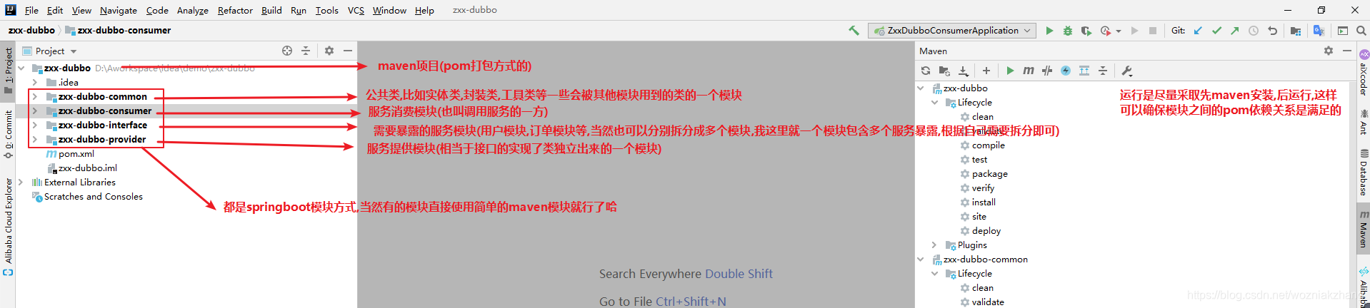 虽然微服务已经流行起来了,但是由于公司很多架构仍然是采用dubbo+zookeeper搭配组合实现分布式项目架构,所以这里还是象征性写个笔记,以后可以用来回味,博客基于当时最新稳定版而写的,后续版本有变化,请自行留意.(springboot2.3.4+dubbo2.7+zookeeper3.6.2)