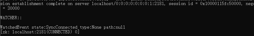 客户端连接成功如图(注意,客户端连接会占用8080端口,所有注意一下,要么测试客户端可以连接,然后就关掉CMD窗口,因为dubbo默认端口也是8080,当然后面的8080端口也可以修改一下,看自己选择)