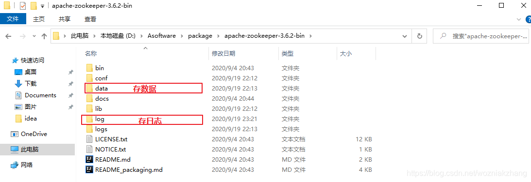 新建文件夹data和文件夹log,并在配置文件zoo.cfg(默认是zoo_sample.cfg,需要改名字为zoo.cfg)的13行左右,配置数据路径和日志路径(这里以Windows版本为例,所以改了一下)