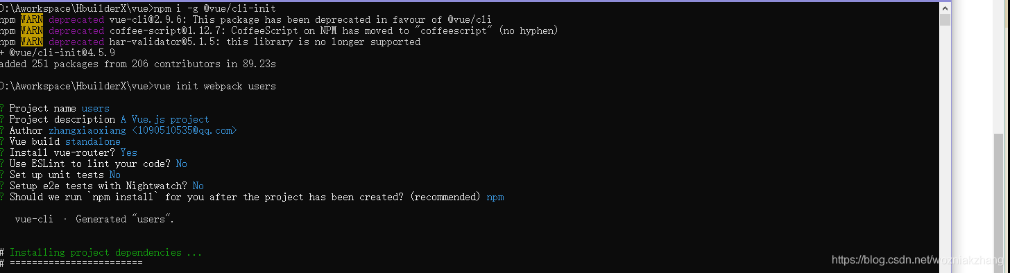 D:\Aworkspace\HbuilderX\vue>vue create hello