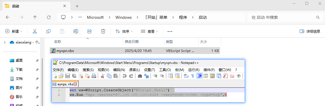 ws.Run "npc -server=远程IP:8024 -vkey=home-token -type=tcp",0