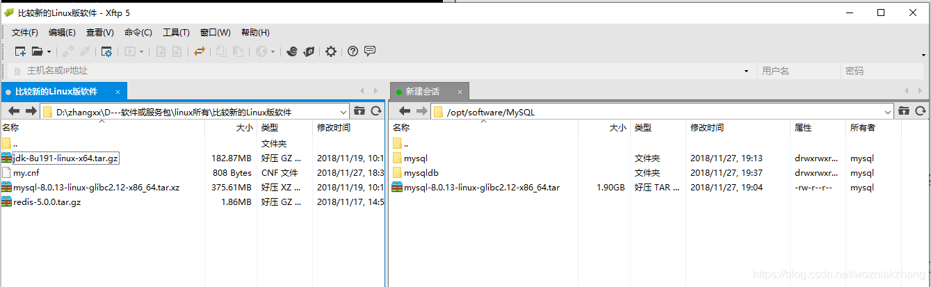 1:创建目录,并上传安装包(如:/opt/software/MySQL)