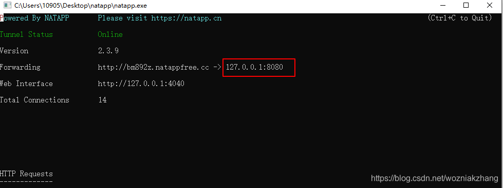 4:配置本地启动(这里以Windows版本为例,注意配置文件和natapp.exe在同一路径):https://natapp.cn/article/config_ini
