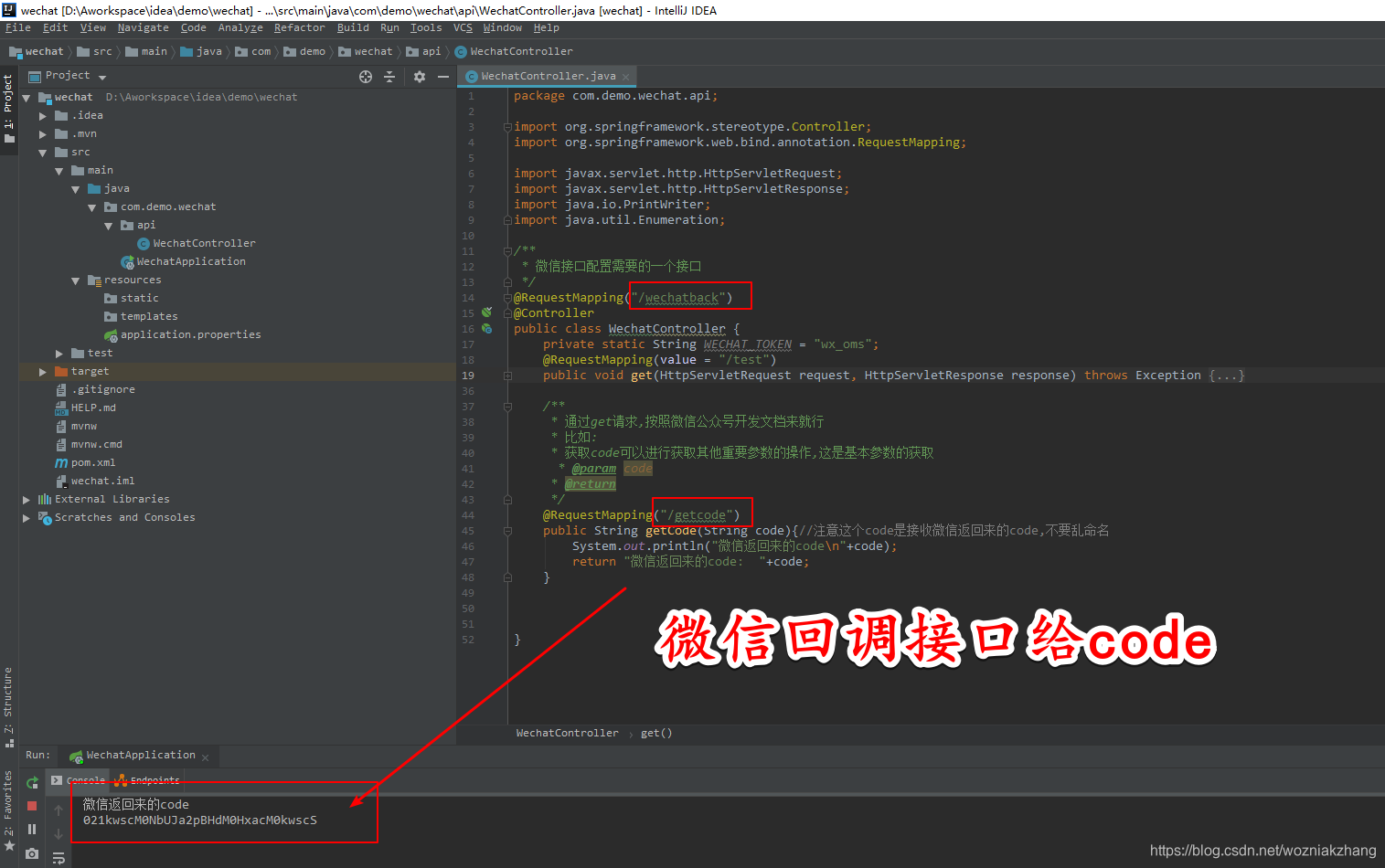 上面的/wechatback/test接口的写法(仅供参考,我也是网上找的一段)