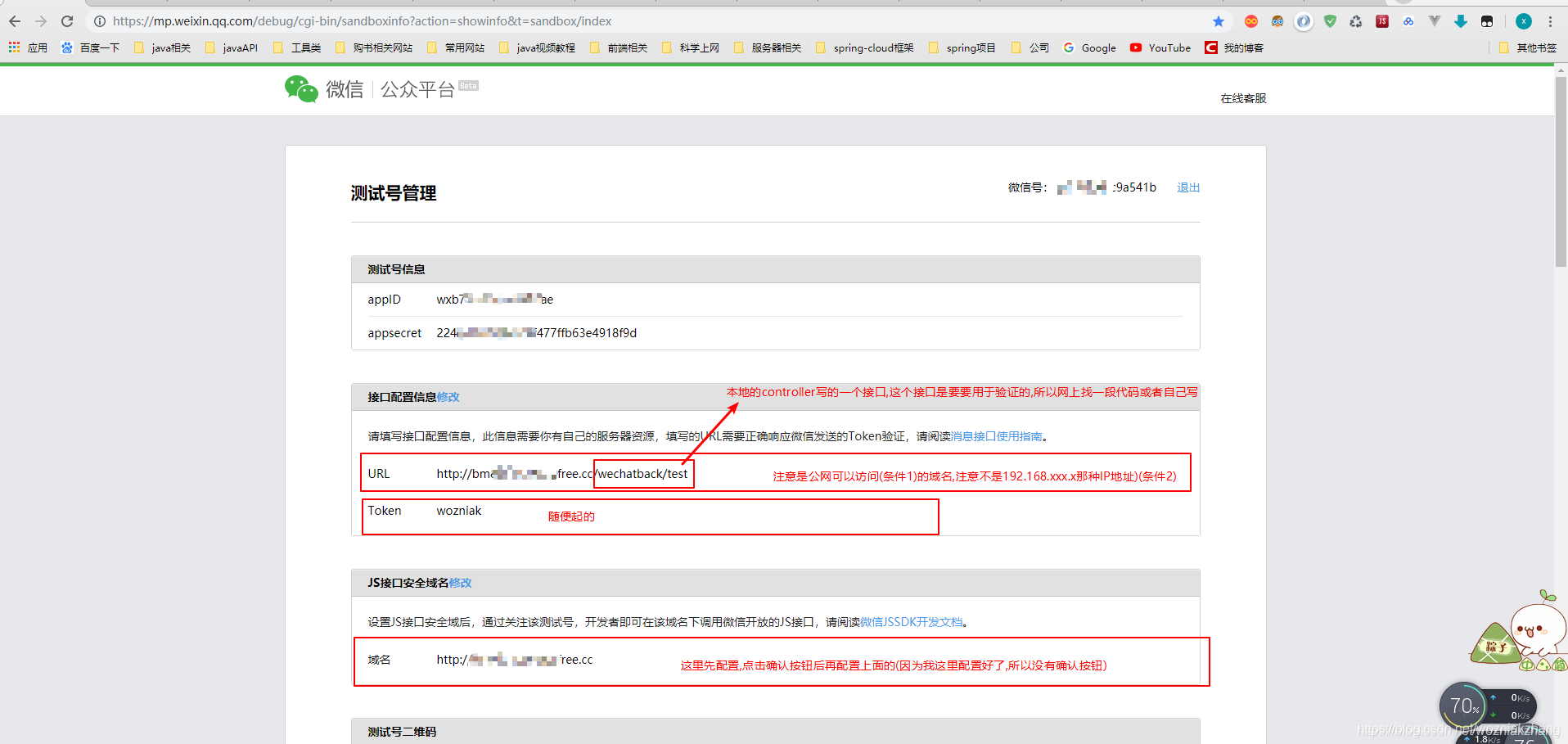 回调地址(回调接口):(微信通过你的发送的请求(比如授权,支付等),响应给你的信息,但是他不知道怎么返回给你,这个时候他说你要是能够配置一个回调地址,那他就把响应的信息放到这个地址里面,但是不能是IP地址,而是域名地址(相当于IP的别名,其实本质是一回事,但是他就认这个别名),但是你如果配置的是本地的地址IP,那么他仍然不能把响应的信息给你,因为条件是(1:这个地址外网能够访问,2:纯数字的IP地址他不认识),那么你需要做的就是满足他,配置一个(1:外网可以访问的地址,2:这个地址不要是单纯的数字的192.168.xx.x那种格式,而是https://www.baidu.com/这种域名的格式)他好把信息携带过来,放到你的回调地址)