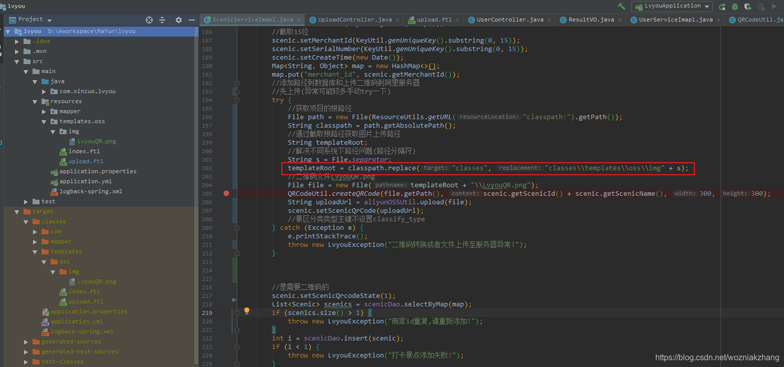 本文介绍如何在SpringBoot项目中实现图片上传至阿里云OSS,并生成包含景区信息的二维码。通过代码示例展示了如何获取项目根路径,解决跨平台路径问题,以及使用QRCodeUtil生成二维码的方法。