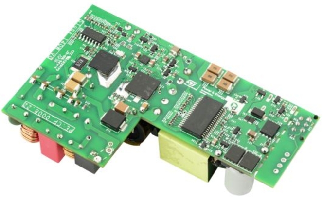 ST 开发出 SEVLONE140W充电器参考设计, 该充电器功率密度达25W/in3,峰值效能超过94%。PCB尺寸为55mm*85mm*23.5mm 。