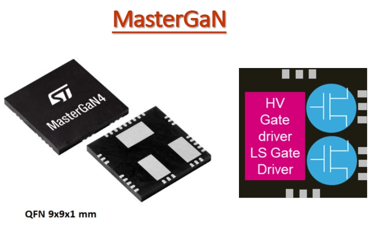ST-ONEHP十分适合与MasterGaN 配合使用,MasterGaN 封装仅仅9mm x 9mm,内置两个GaN MOS+高压驱动,相较于传统Si MOS,具有优越的热性能和开关效率等优势。 MasterGaN能与ST-ONE转换器互补优势,并有助于最大限度地提升性能和开关频率,