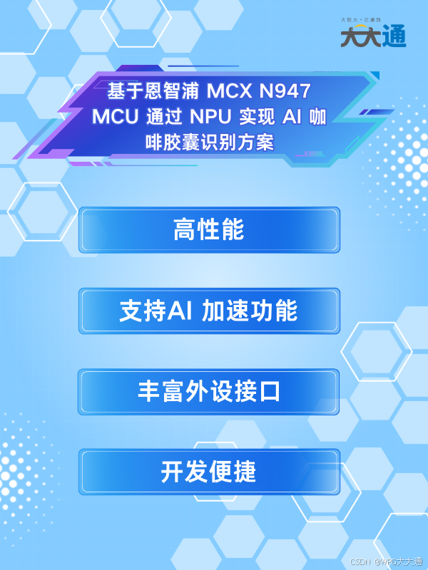 具体方案详情可点击:基于恩智浦 MCX N947 MCU 通过 NPU 实现 AI 咖啡胶囊识别方案 - 大大通(简体站)