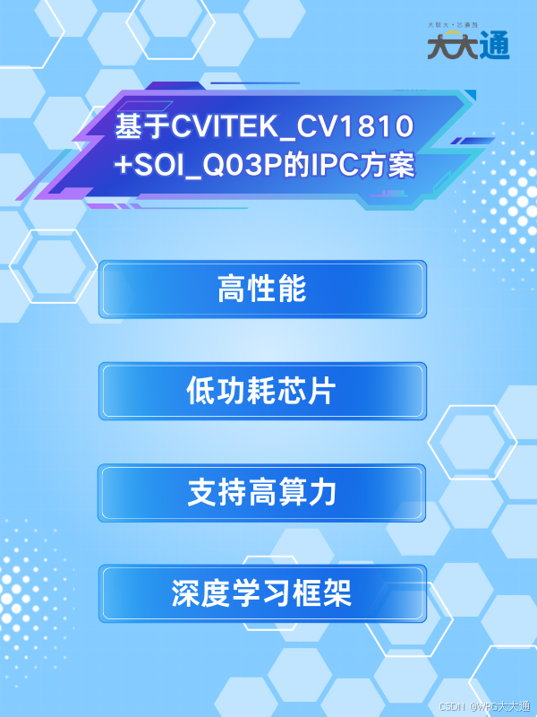 具体方案详情可点击:基于CVITEK_CV1810+SOI_Q03P的IPC方案 - 大大通(简体站)