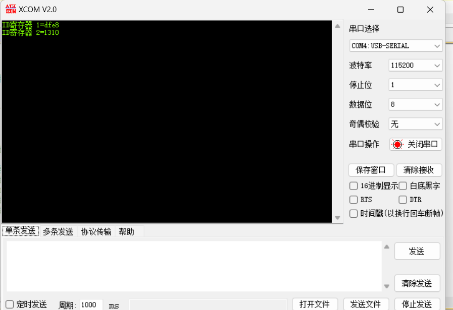 4.2 串口助手接收到ID1 和ID2的值: