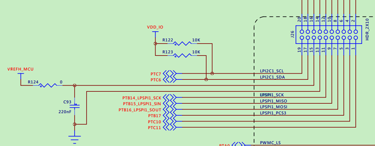 S32K312的SPI有Flexio_SPI和LPSPI之分,前者一般用IO模拟,本次用LPSPI来进行通信,查看原理图可看到J26有LPSPI1的引脚,