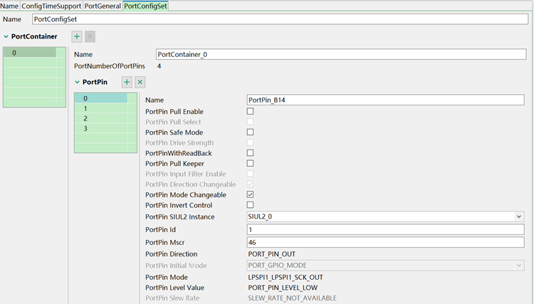 同样新建工程后双击.mex进入模块配置比生成相应初始配置代码,在进入后首先添加Port和DIO模块,在Port模块配置4根线的第1功能,