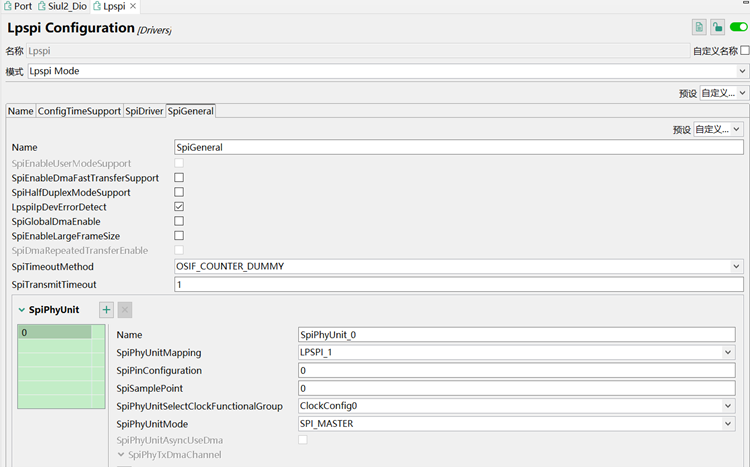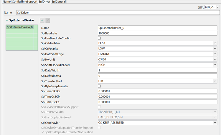 配置完IO引脚然后添加第2复用功能即LPSPI功能,切到SpiDriver页,此处LPSPI1_PCS3需要切成PCS3,其他可以保持默认,