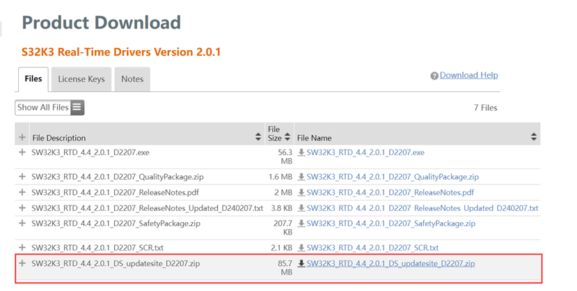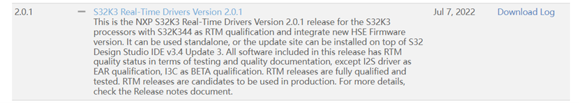 选择选中的为S32K3的驱动层SDK。之后会看到非常多的版本的DSK,这是因为NXP在K3系列芯片上不断进行更新,逐渐完善所有MCU的支持。我们选取最近一个S32K312相关的稳定的RTD SDK。