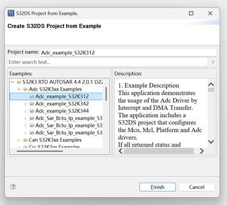 在主要页面点击“File”->“New”->“S32DS Project from Example”,可以看到如下对话框: