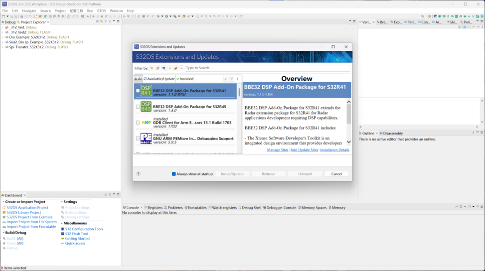 完成了以上两个主要的步骤,我们就可以在S32DS里看到和导入我们安装的NXP官方的例程了。