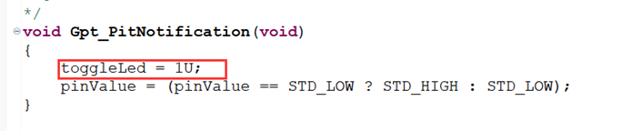 同时我们也可以配置Gpt的计数完成的回调函数,起个名字为“Gpt_PitNotification”,以便于在回调函数中实现LED的闪烁。