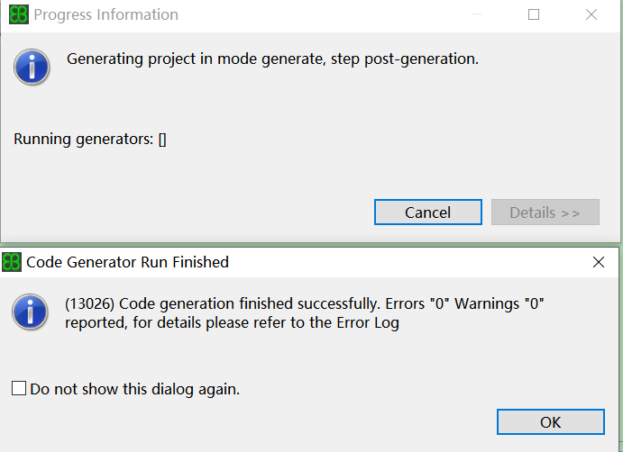 此时可以看下是否有错误,有错误设置栏会直接字体变红提示设置错误,没有错误后像S32DS的“更新源代码”一样点击工具栏的“Generate code for the current selected projects”小锤子图标按钮就能生产初始化代码类似S32DS的操作体验,