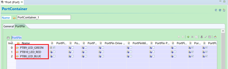 资源以容器的方式管理,切到PortContainer,进入实例1后如本章节开头所讲配置RGB引脚,总览如下: