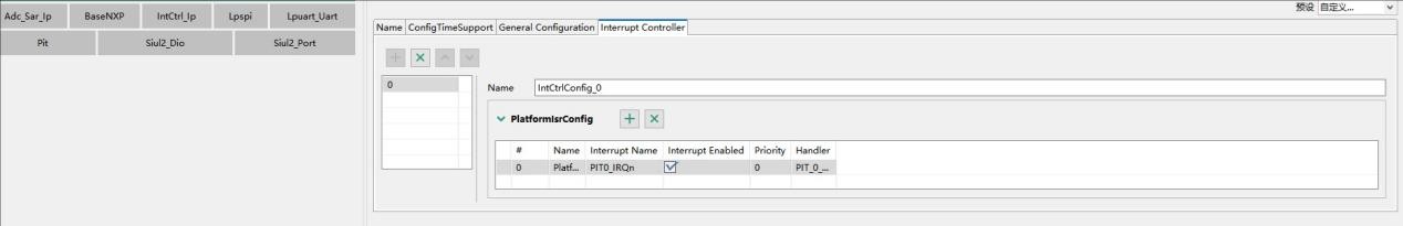 在全局中断模块IntCtrl_Ip中需要添加PIT0的CH0的使能: