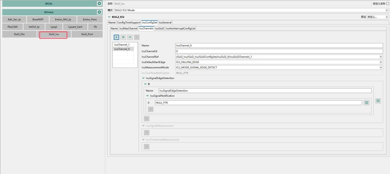 调试CAN通信需要先把前置模块Siul2_Icu模块使能,并添加两个通道: