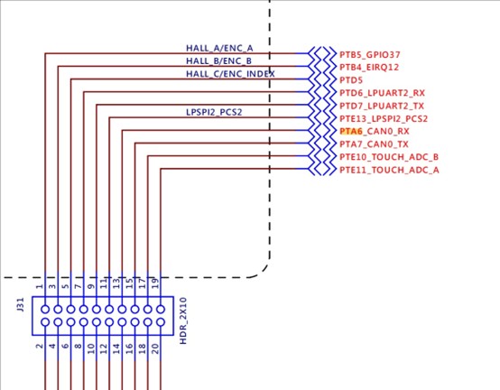 将PTA6和PTA7引脚与CAN收发模块进行连接: