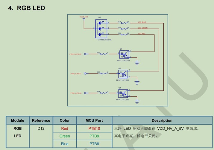 ●PTB8:GPIO[40],用于控制蓝色灯光
