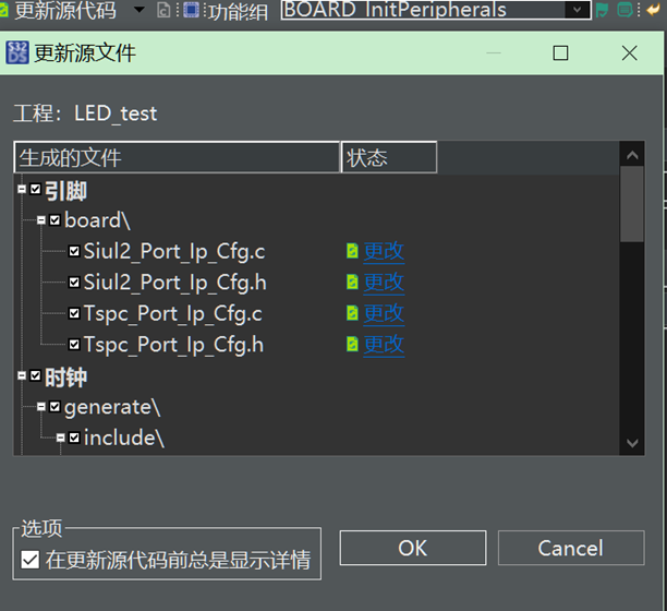 最后单击“更新源代码”生成 Pin 配置代码。在图 2-15 中,可以选择需要更新的文件;