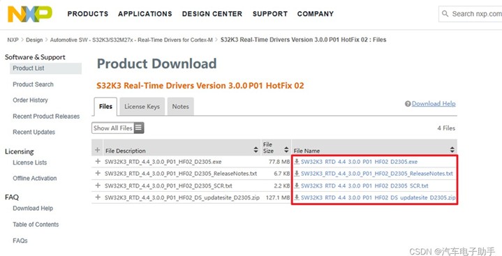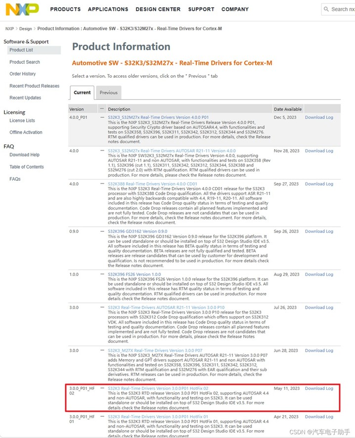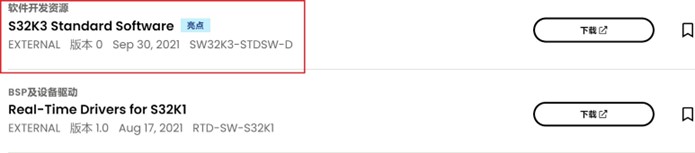 打开链接S32K 汽车通用 MCU | NXP 半导体,页面往下翻,找到软件中的 S32K3 Standard Software,单击下载。