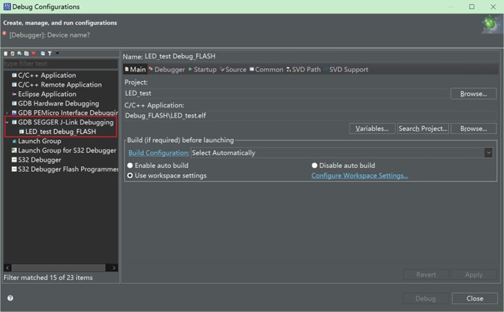 在弹出的 Create,manage,and run confugurations 对话框,选中 GDB SEGGER J-Link Debugging,鼠标右键在其上下文中选择 New Configuration;