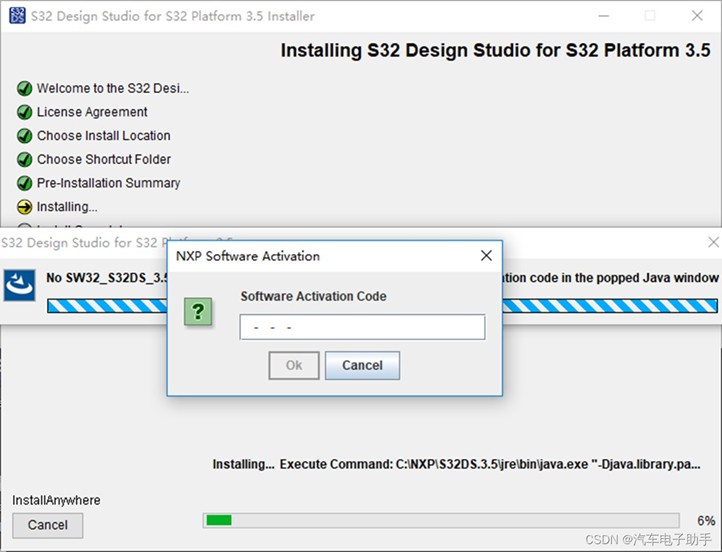 在弹出的“NXP Software Activation”中,填入图 3 中的 License,单击 OK;