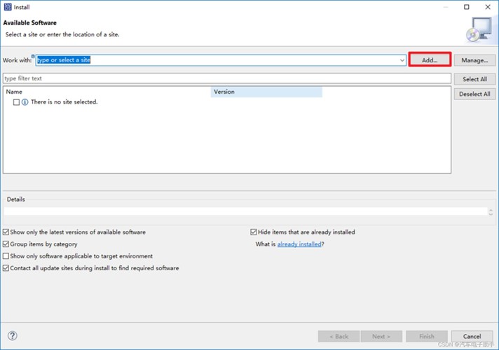RTD 包下载完成后,菜单栏依次选择 Help –> Install New Software…;