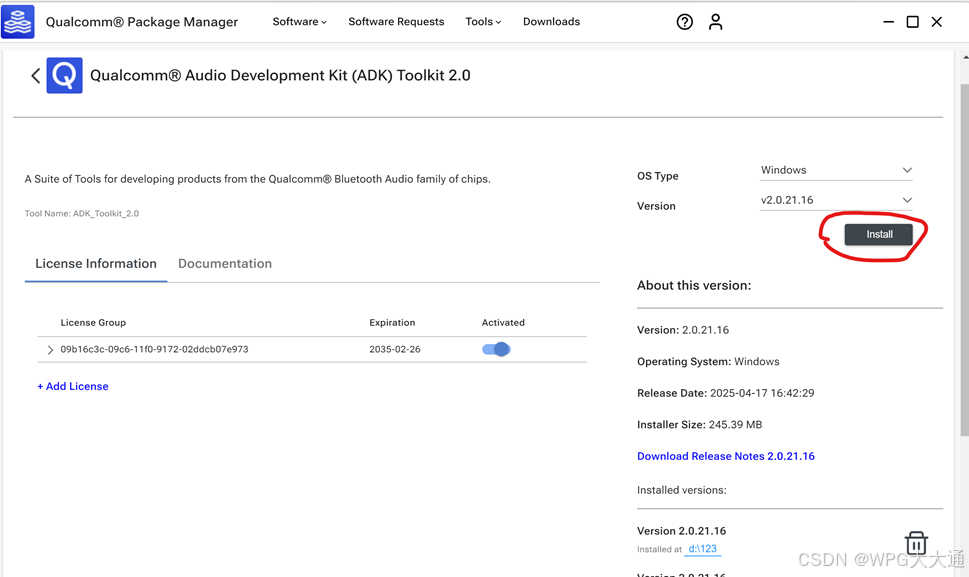 安装软件包qsc-cli tool install -n ADK_Toolkit_2.0 --path d:\123,然后按照提示正常执行安装过程即可,这里是可以指定安装目录的.