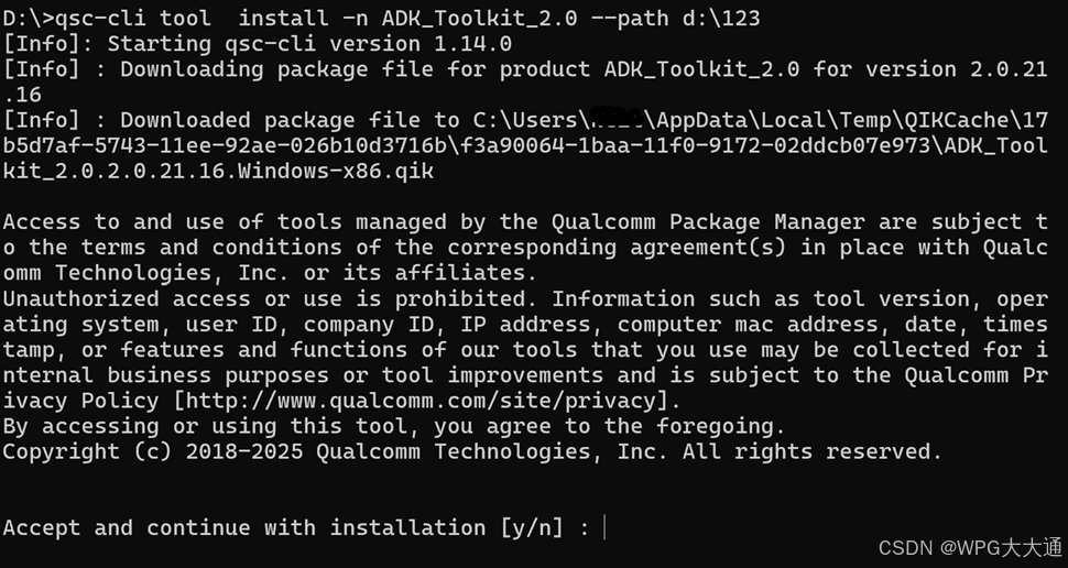 如果执行下载也可以执行qsc-cli tool download -n ADK_Toolkit_2.0 --path d:\123