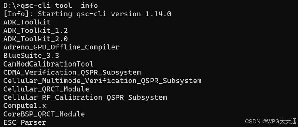 首先执行qsc-cli tool info,获取当前可用软件包信息