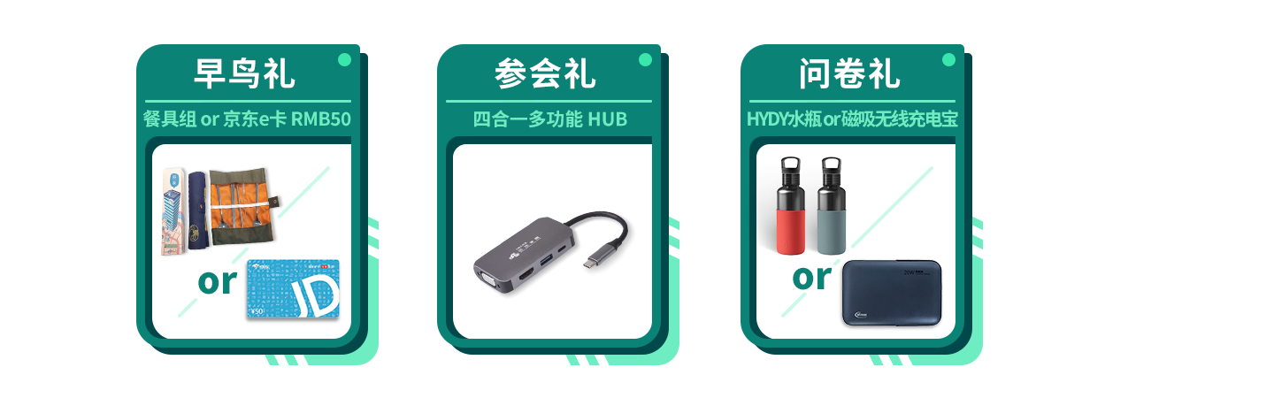 ① 早鸟礼(共 6 份) : 304 不锈钢环保餐具组 or 京东e卡 RMB.50。