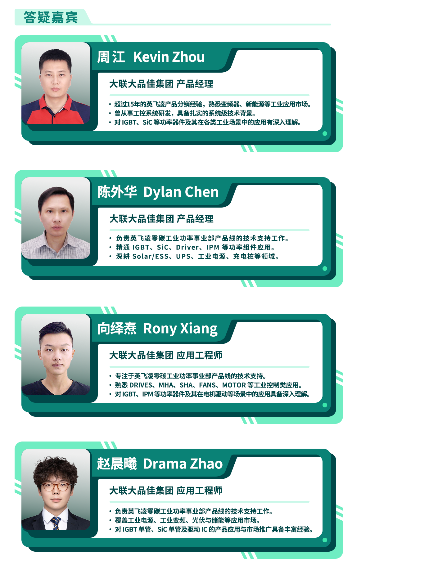 从硅基到宽禁带半导体,英飞凌持续引领功率半导体技术发展,构建涵盖全功率段的产品组合,并透过智能控制与系统优化设计,赋能新能源系统效率提升与性能突破。大联大品佳也将持续发挥技术服务优势,为客户提供从选型到应用的全流程支持,加速客户导入与落地。