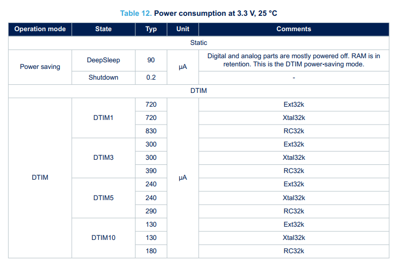 如需更详细的功耗数据(如不同工作模式下的电流值),建议查阅官方数据手册或评估板文档。