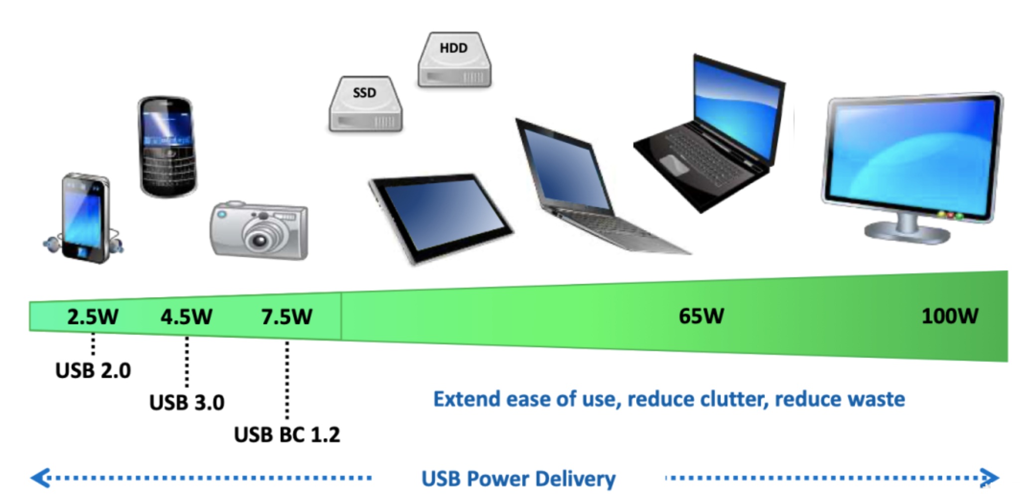 USB Power Delivery 1.0-支持多种方案,5/12/20V 1.5/2/3/5A(最高100W),针对多种设备设计,可为笔电充电。(需要新款的接头、安培数够大的线)