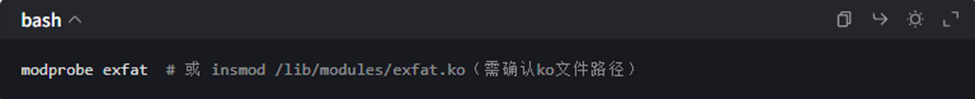 1. 独立模块方案:执行modprobe exfat加载驱动;