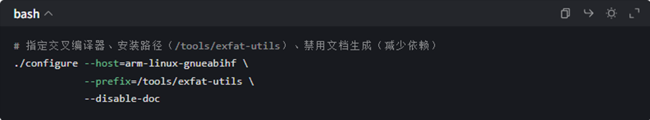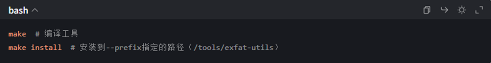 --prefix=/tools/exfat-utils:指定工具安装到`/tools/exfat-utils目录,便于后续打包;