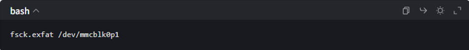 2. 检查文件系统**:使用`fsck.exfat`检查SD卡是否有错误: