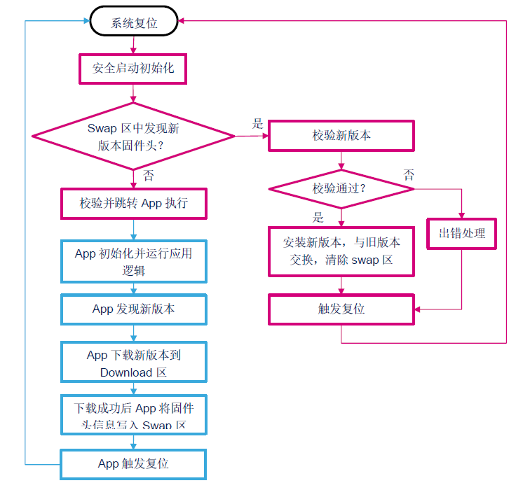 安全启动与安全更新是嵌入式设备的基本安全要求之一:安全启动提供信任根,保证每次设备启动运行的应用程序的完整性与合法性;安全更新则在固件升级环节避免系统软件被恶意修改或替换。