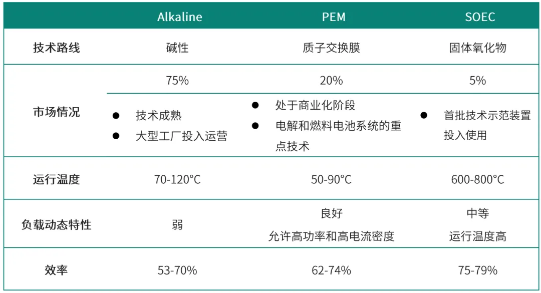 表1 电解氢技术