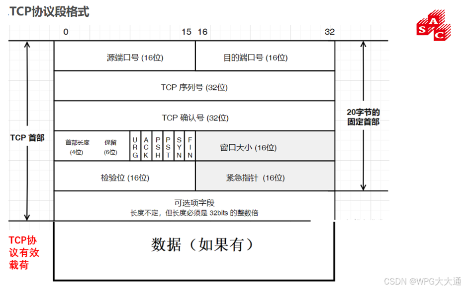 了解了TCP协议的基本概念,我们接着看看TCP协议段格式: