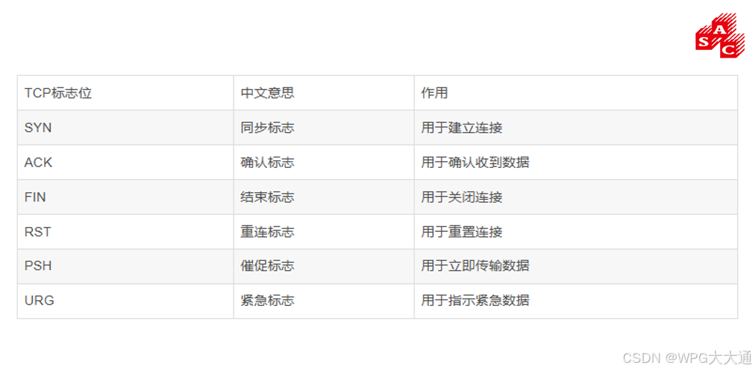 ---控制标志占6位,具体的标志位为URG,ACK,PSH,RST,SYS,FIN.(有6个标志位,每个标志位1bit,即只有0和1两种状态.)