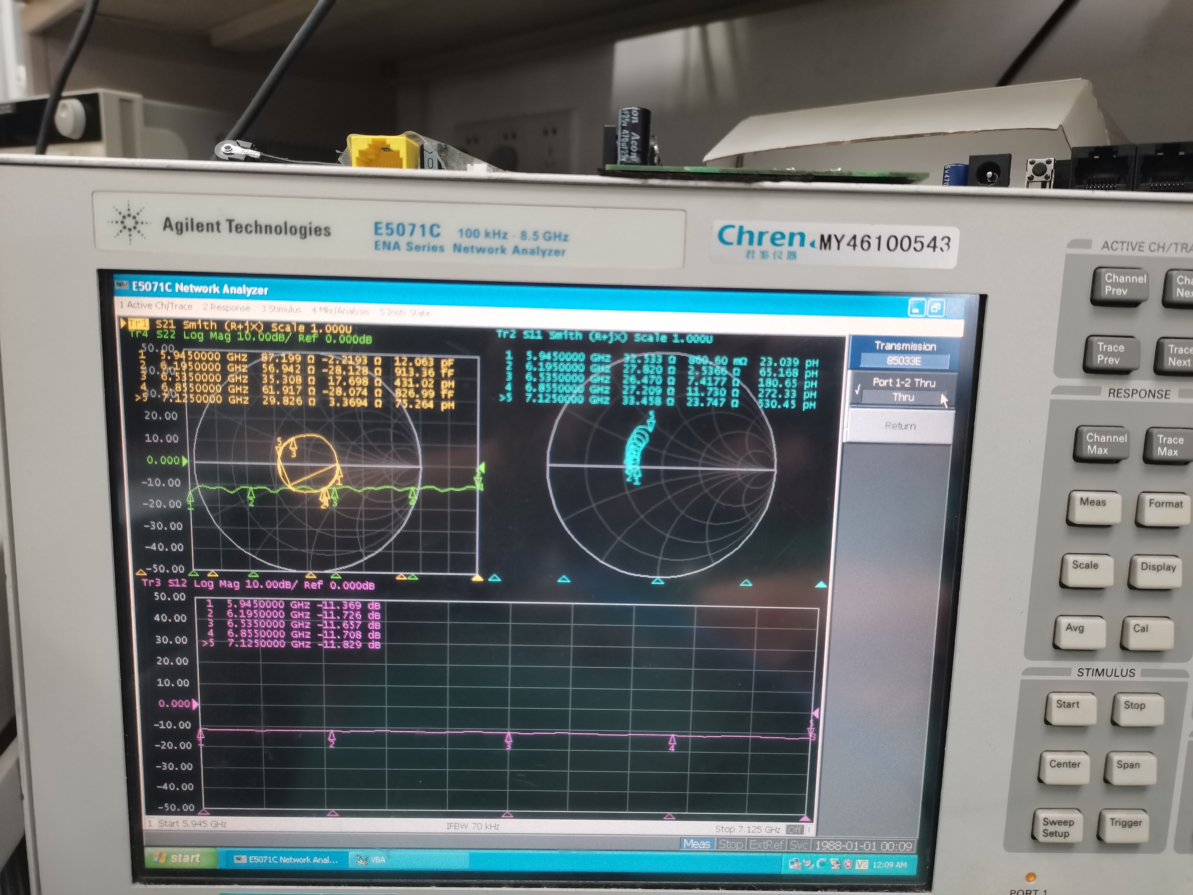 既然FEM是放大器,如果我们要了解这个芯片的实际放大倍数,就是增益,那么要怎么测试呢?下面以VC5871-11 6G频段的FEM芯片,Agilent Technologies E5071C为例,进行介绍测试方法步骤。